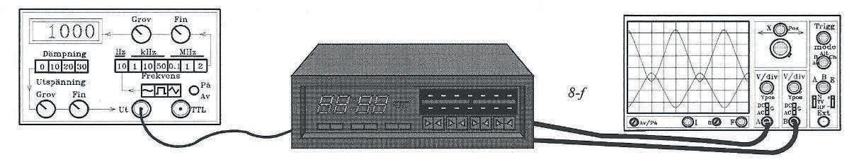 3. Anslut oscilloskopets andra kanal till OP-förstärkarens utgång. Var noga med att jordanslutningen kopplas till samma jordpunkt. Mät UUT och anteckna.
