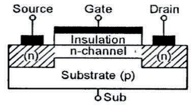 En MOSFET av depletion-typ liknar en JFET utom att G är helt och fullt isolerad.