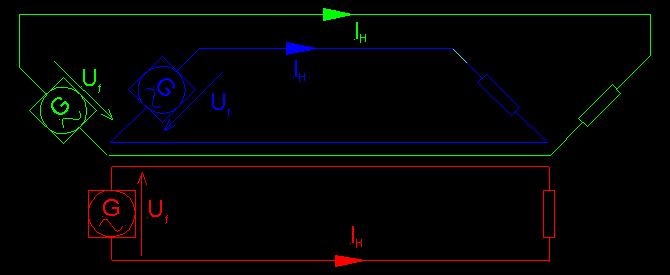 Varje lindning är en separat enfasgenerator som kan driva ström genom en belastning.