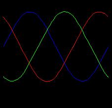 De tre sinusformade spänningarna som induceras under ett varv är fasförskjutna 120 i förhållande till varandra eftersom lindningarna är anordnade så.