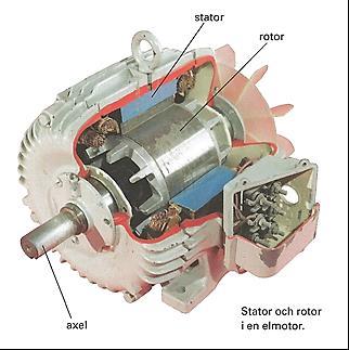 Magnetfältet utövar i sin tur kraftverkan på rotorn så att den och drivaxeln roterar.