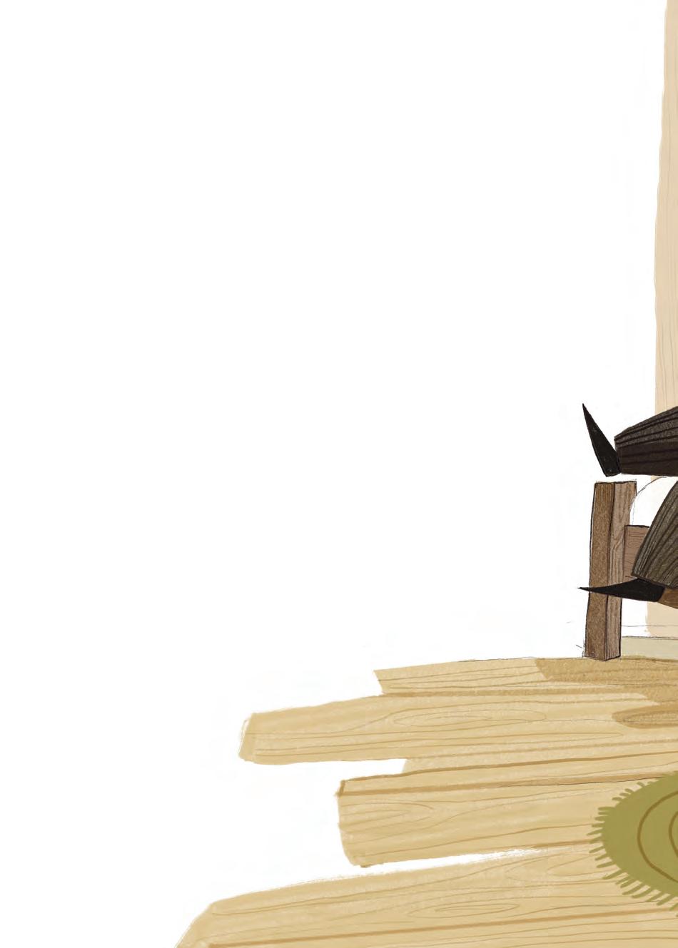 Figuren reste sig och försvann ut i natten. Kvar stod snickaren med träbiten, som var perfekt lagom lång för att vila på hans underarm. Han tog den med sig och la försiktigt ner den på sin arbetsbänk.