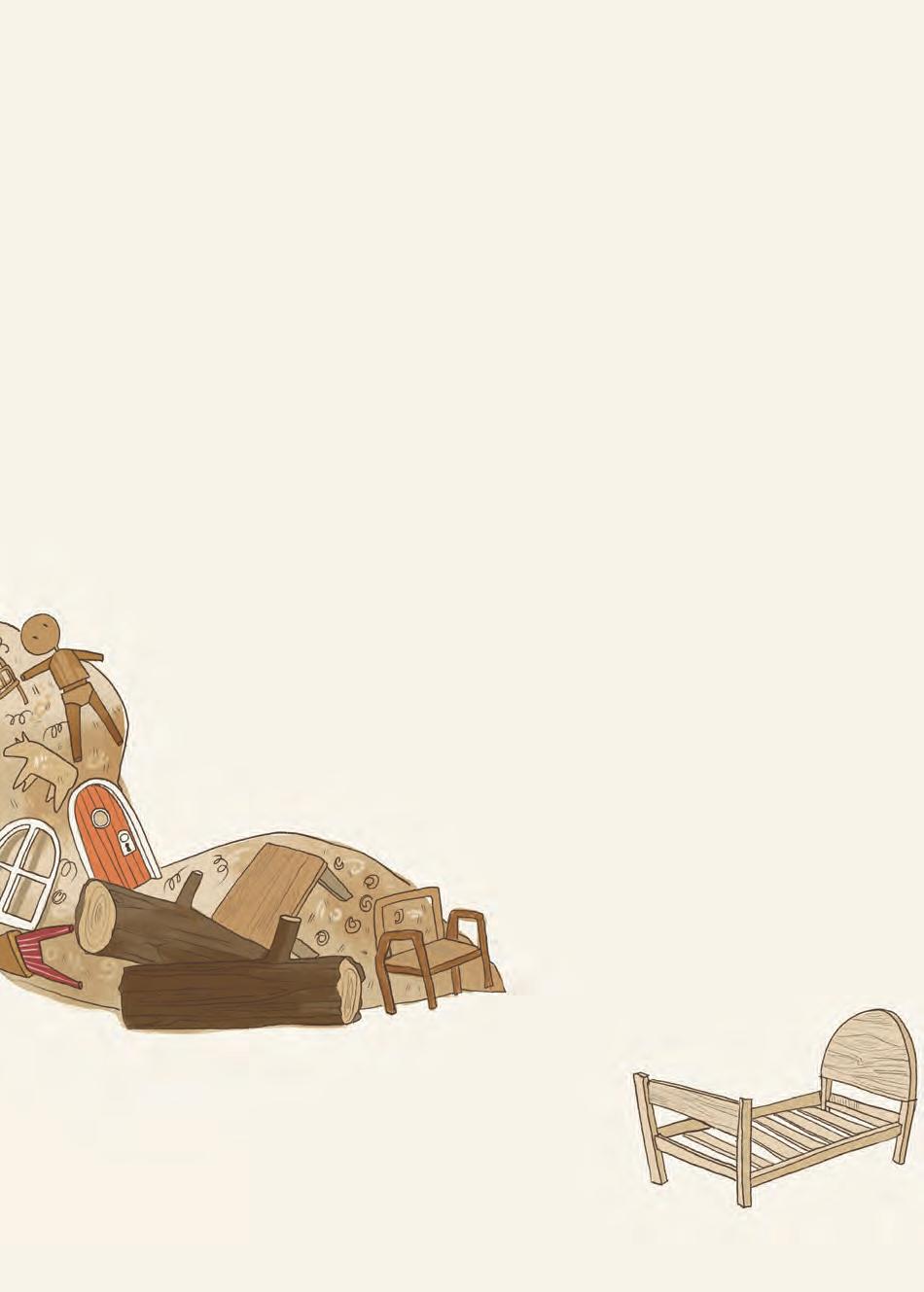 byggde en djungel för dockornas äventyr. Han snickrade en säng till dottern som stod på golvet bredvid hans egen.