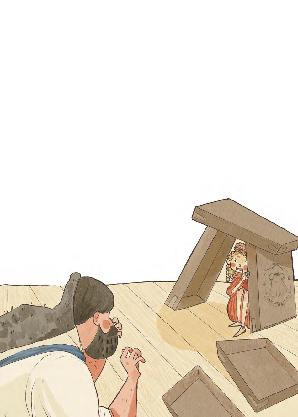 Julia tittade tyst på skåpet och klämde eftertänksamt på en docka. Hon hasade ner från snickarens knä och försökte gå till skåpet. Men eftersom hon aldrig hade gått på sina träben tidigare tappade hon balansen så fort fötterna nådde golvet.
