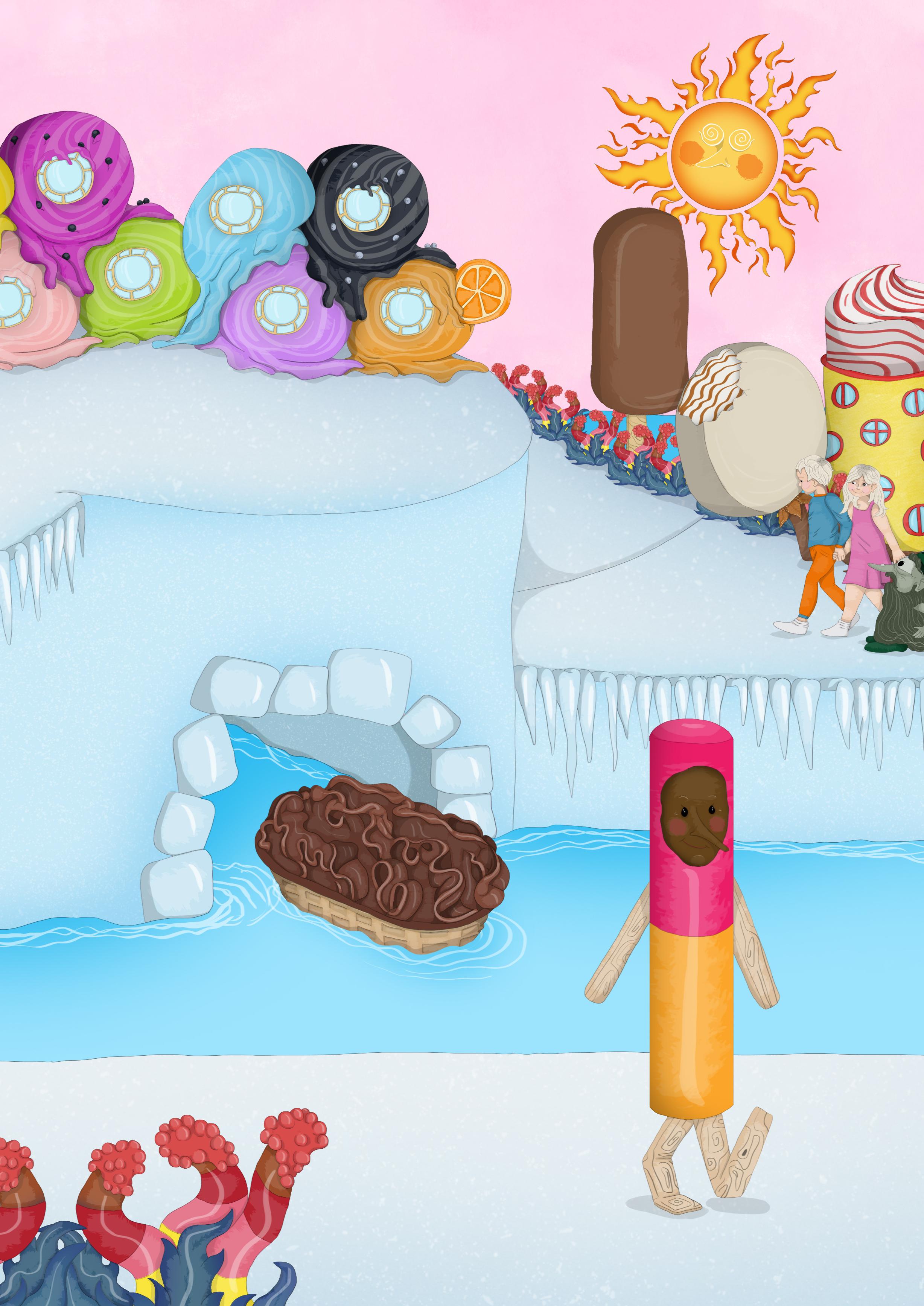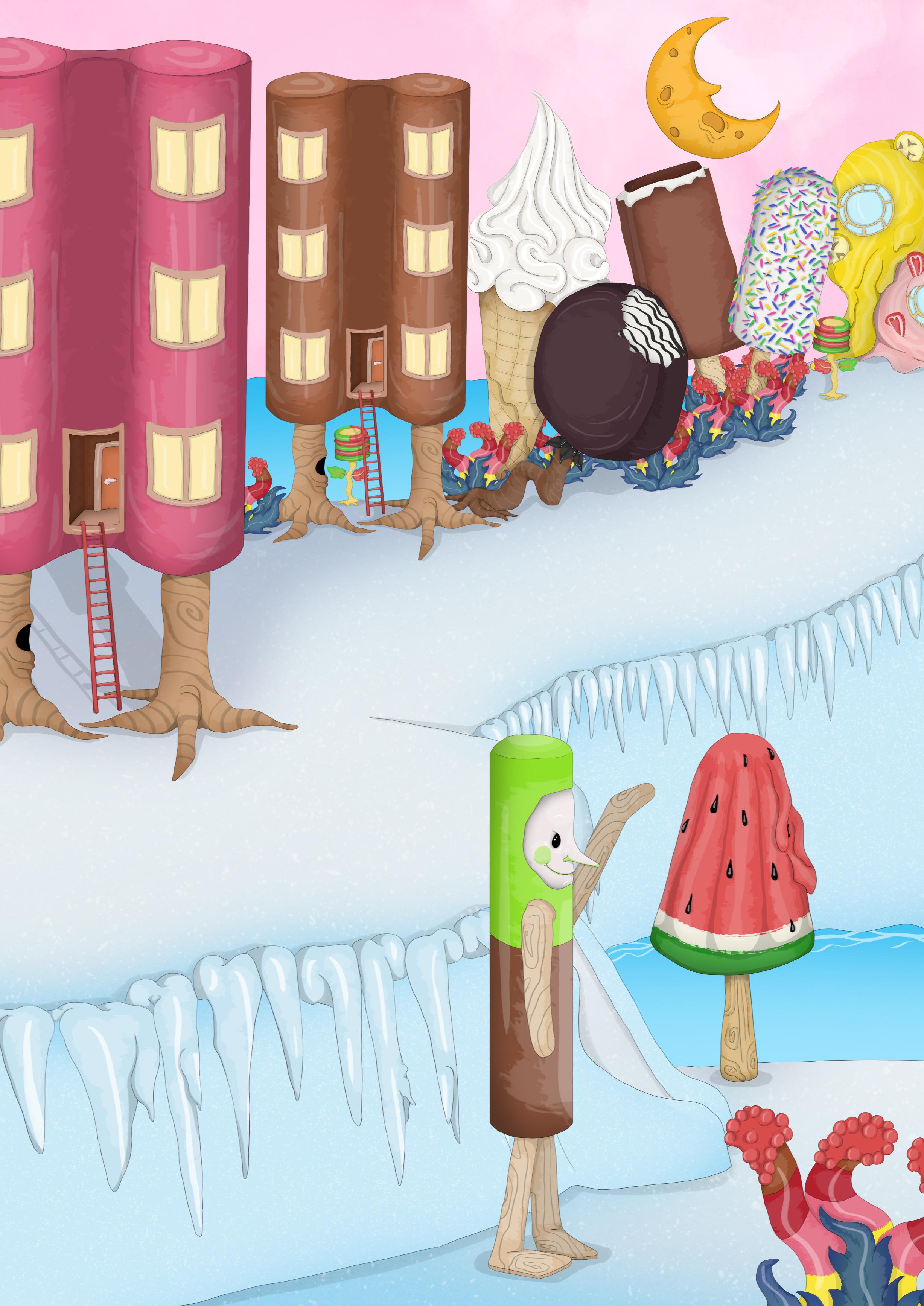 De gick över Klubbåkern, genom Glassbyn och över några polkagrisbroar till innan...