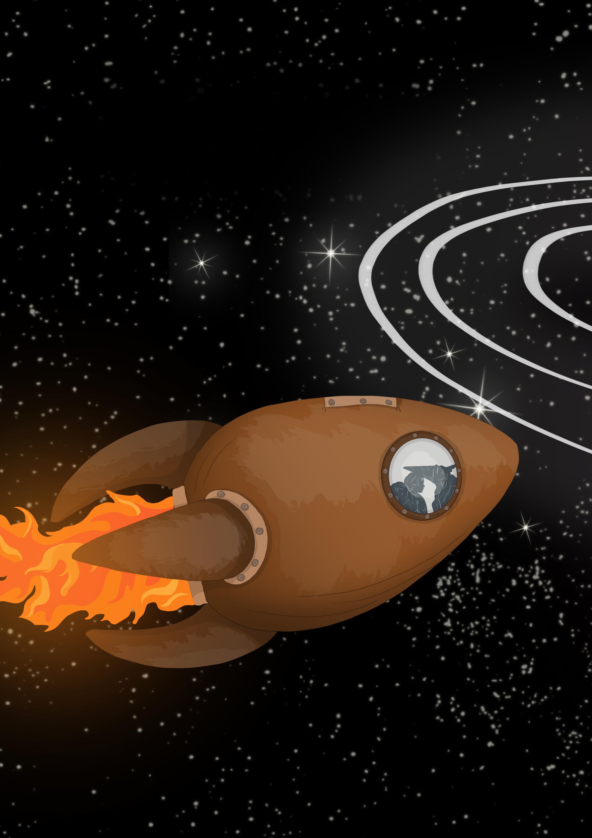 Uppe i rymden utanför fönstren tindrade stjärnorna likt strösockret på en vaniljmunk medan chokladraketen for förbi. Gubben pekade på en prick rakt fram som blev allt större och sa: "Det är dit vi ska, där är Calypso Colombia".
