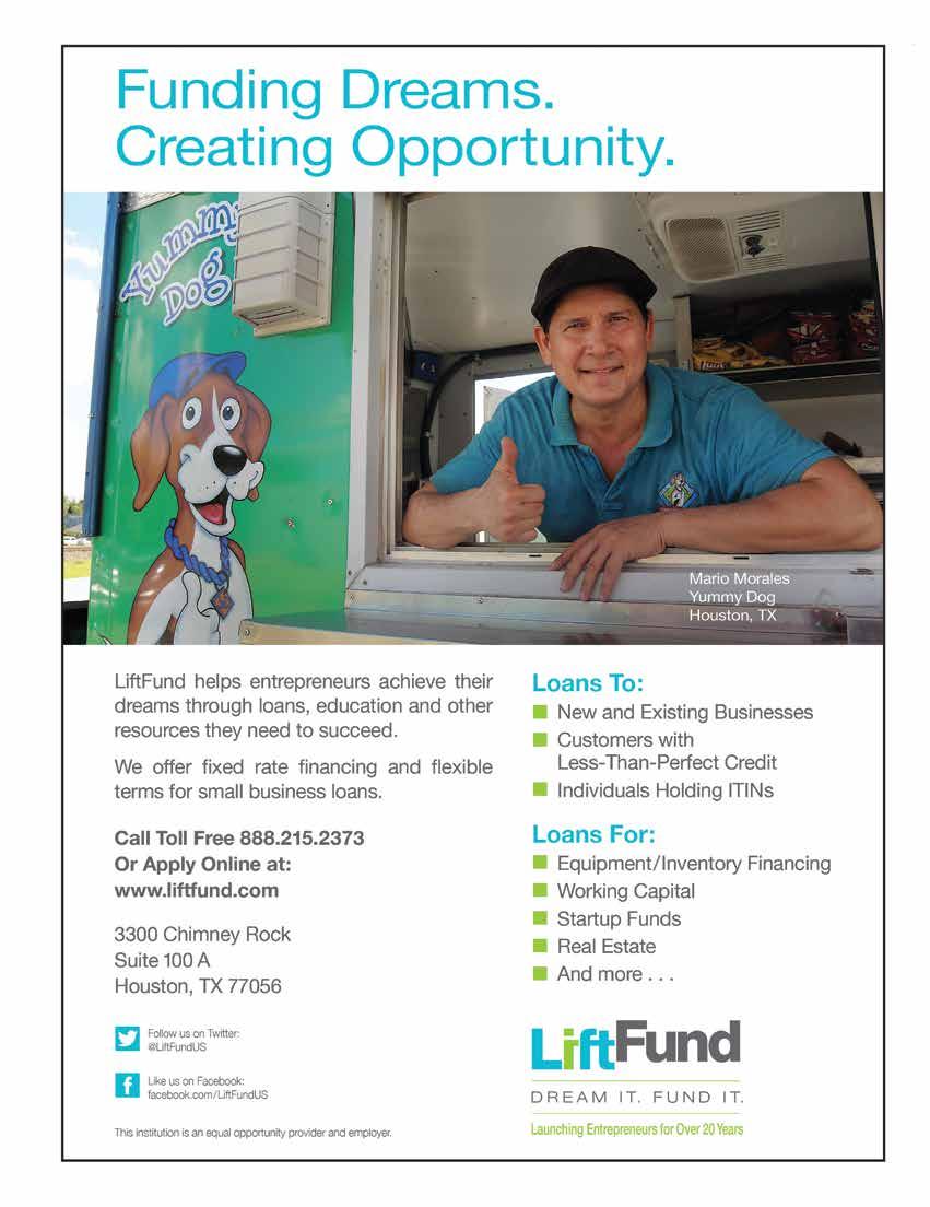 24 SMALL BUSINESS TODAY MAGAZINE [ FEBRUARY I MARCH 2021 ] ADVERTISERS INDEX FEBRUARY I MARCH 2021 EDITION HOUSTON 9 Autism Speaks - Ad Council 20 Designs by Malka 2 Eusery Team - Texas United Realty 20 Gwen Juarez Photography Inside Front Cover LiftFund 24 Optima Vitamins Back Cover Phil & Derek’s Restaurant & Jazz Bar Inside Back Cover WBEA