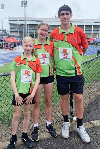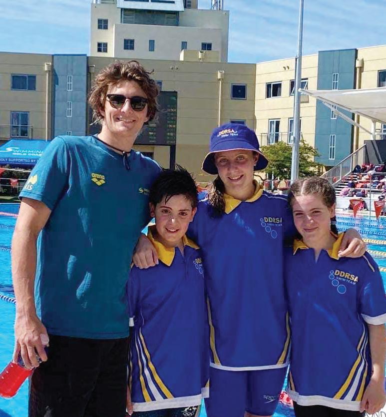 at the Patrons Shield Swim Meet at the Gold Coast with Stanthorpe swimmers Jordan, Emma and Jessica Pradella last month.