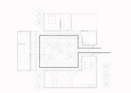 Murcutts parti concept was then able to take form by connecting these purlins with walls. Creating two separate living spaces separated by an open courtyard with a total of ten living spaces, all connected with one continuous hallway. It is these pipe purlins that are the most important structural system within magney house as they are the catalyst for murcutts overall design