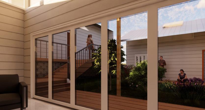 This seperation provides carers/family members a place to stay, whilst the occupants can remain in the front section of the house and not need to use these stairs. The house was also designed with clerestory windows throughout the main sections of the house to maximise natural light, and ventilation to reduce the need for energy