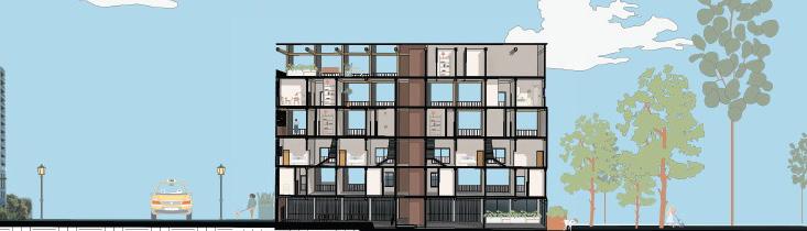 With the growing cost of housing and stagnating wages, people are finding it increasingly difficult to find a place to call home. The project is a direct response to the housing crisis affecting Brisbane. The project proposes a new type of apartment living that is cost effective, flexible and sustainable.