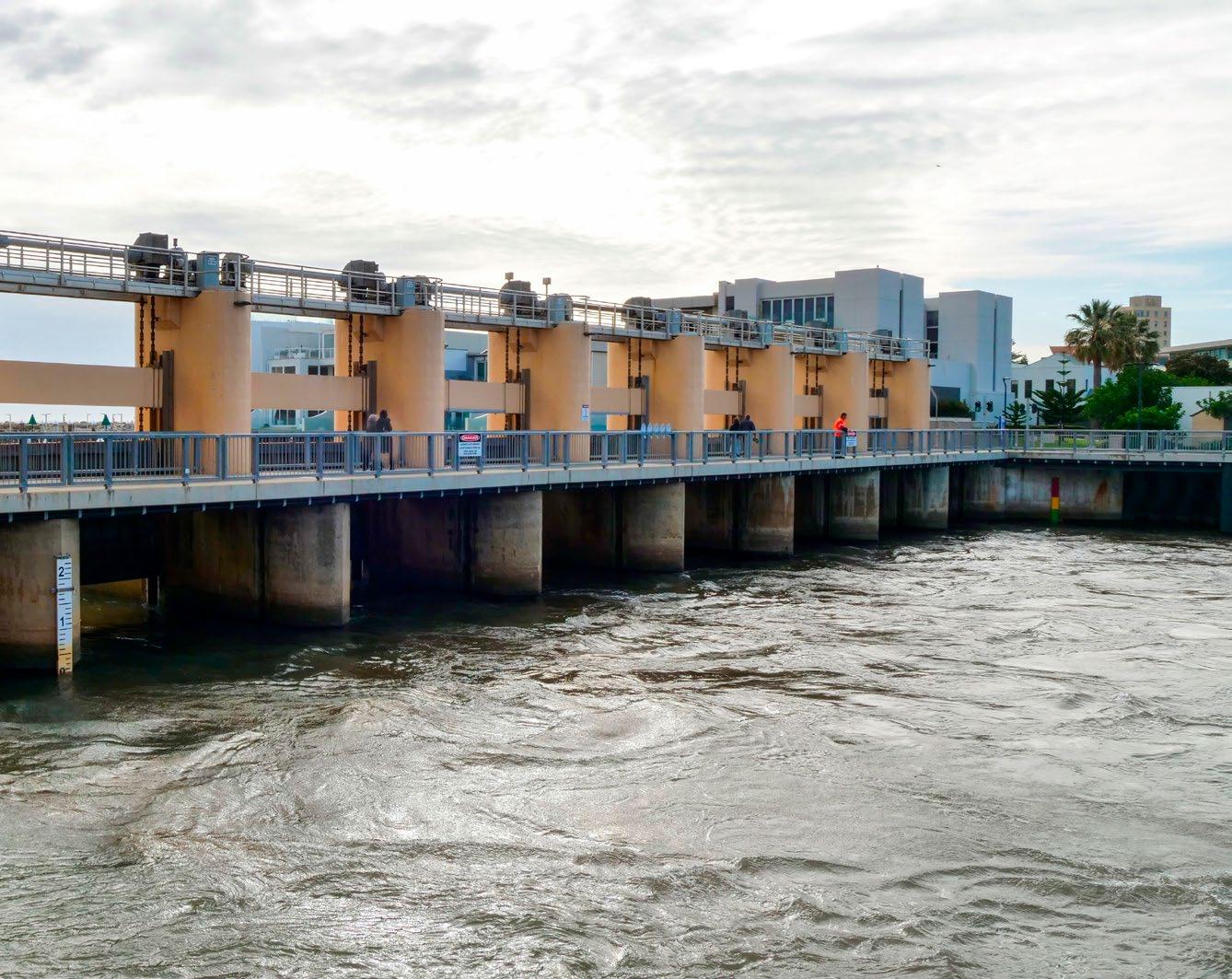 Pg. 102 The Patawalonga Lake System in Adelaide combines flood management with recreational spaces, featuring key infrastructure upgrades.