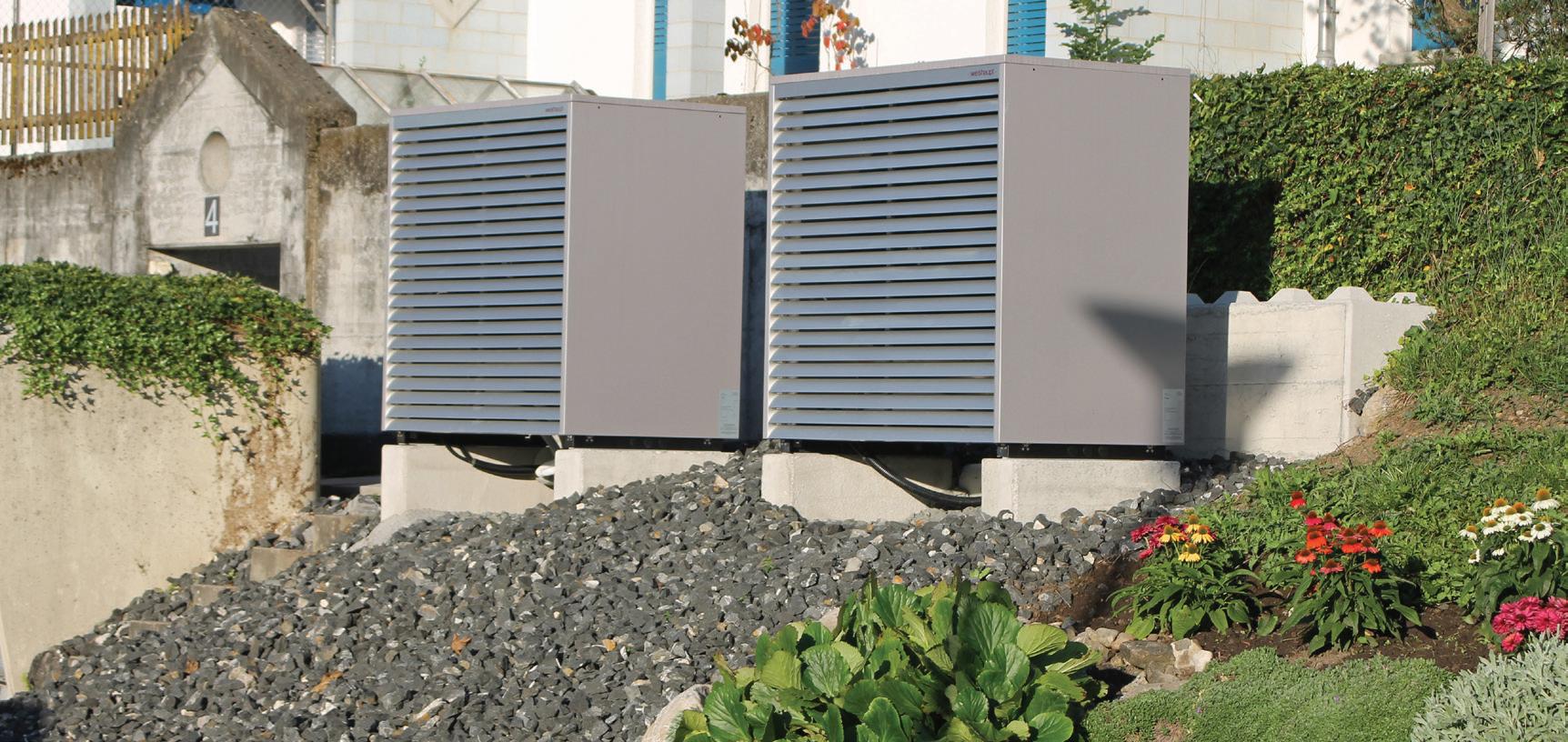 Als Weishaupt-Konzessionär hat der Fachbetrieb viele Weishaupt Systeme installiert und stets gute Erfahrungen gemacht. Ganz besonders hebt der zuständige Projektleiter die geringen Lärmemissionen des Aussengeräts hervor, wohl eines der leisesten auf dem Markt. Der Verdichter befindet sich im Innengerät, was dieses Gerät nicht nur sehr leise, sondern auch sehr effizient macht. Zudem ist dieses Gerät auch für Renovationsobjekte gut geeignet, da es eine Vorlauftemperatur von bis zu 65 °C erreicht. Nicht nur der ausgesprochen leise Betrieb, sondern auch die leicht zu bedienende Steuerung überzeugen den Fachmann. Hohe Effizienz dank Kaskadierung Eine kaskadierende Lösung ist für Renovationsobjekte dieser Grösse besonders