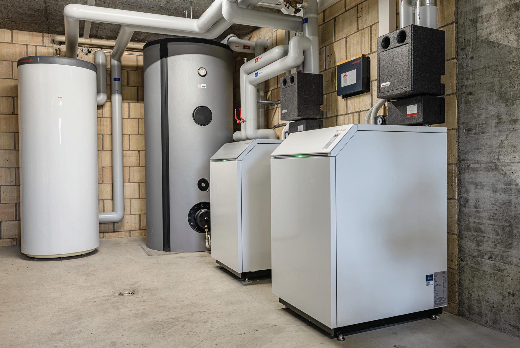 geeignet, da hohe Bedarfsschwankungen abzudecken sind. Denn, – so der Planer und Installateur Herbert Binzegger der Werner Büchel AG – eine leistungsstärkere Wärmepumpe würde in Übergangszeiten in eine hohe Taktung mit kurzen Laufzeiten geraten, was die Lebensdauer des Kompressors verkürzt. Dank der Kaskadierung bestehen zwei grundsätzlich autonome Heizsysteme, was auch die Betriebssicherheit erhöht. In den milderen Jahreszeiten läuft nur eine Wärmepumpe und die Steuerung sorgt dafür, dass sie sich im Betrieb abwechseln.