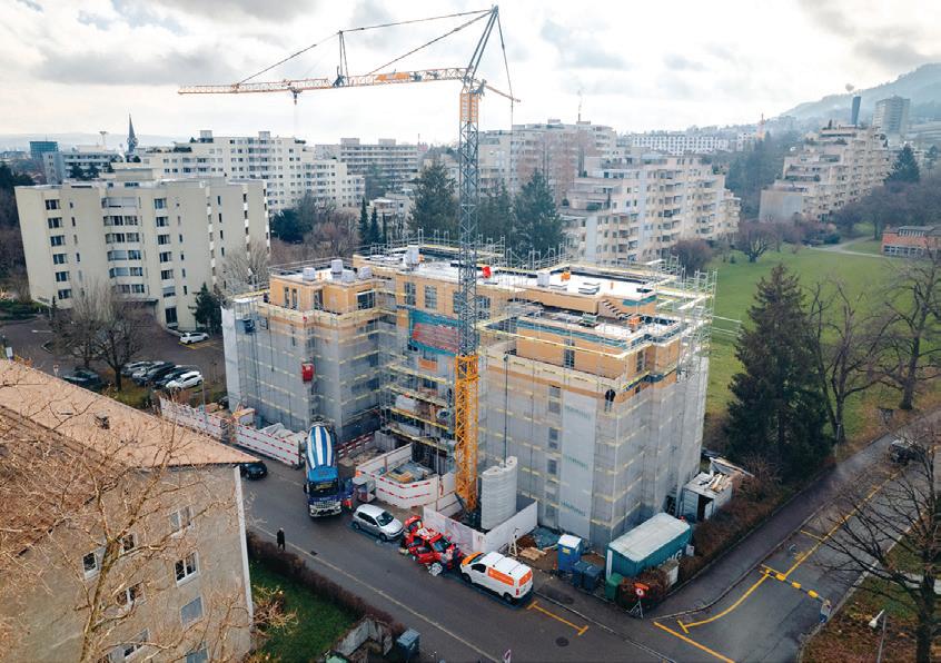 Machbarkeitsstudie und der Planung über die Baueingabe bis zur Schlüsselübergabe – aus einer Hand übernimmt. Die Kombination aus präziser Planung, optimierter Vorfabrikation und schneller Montagebauweise sorgt dafür, dass Projekte wie die zweigeschossige Erweiterung in Zürich-Seebach oder die Aufstockung in der Langgrütstrasse in kürzester Zeit realisiert werden können. «Wir haben ein System geschaffen, das den Bauprozess für unsere Kundschaft so einfach und reibungslos wie möglich gestaltet», so Marti weiter.