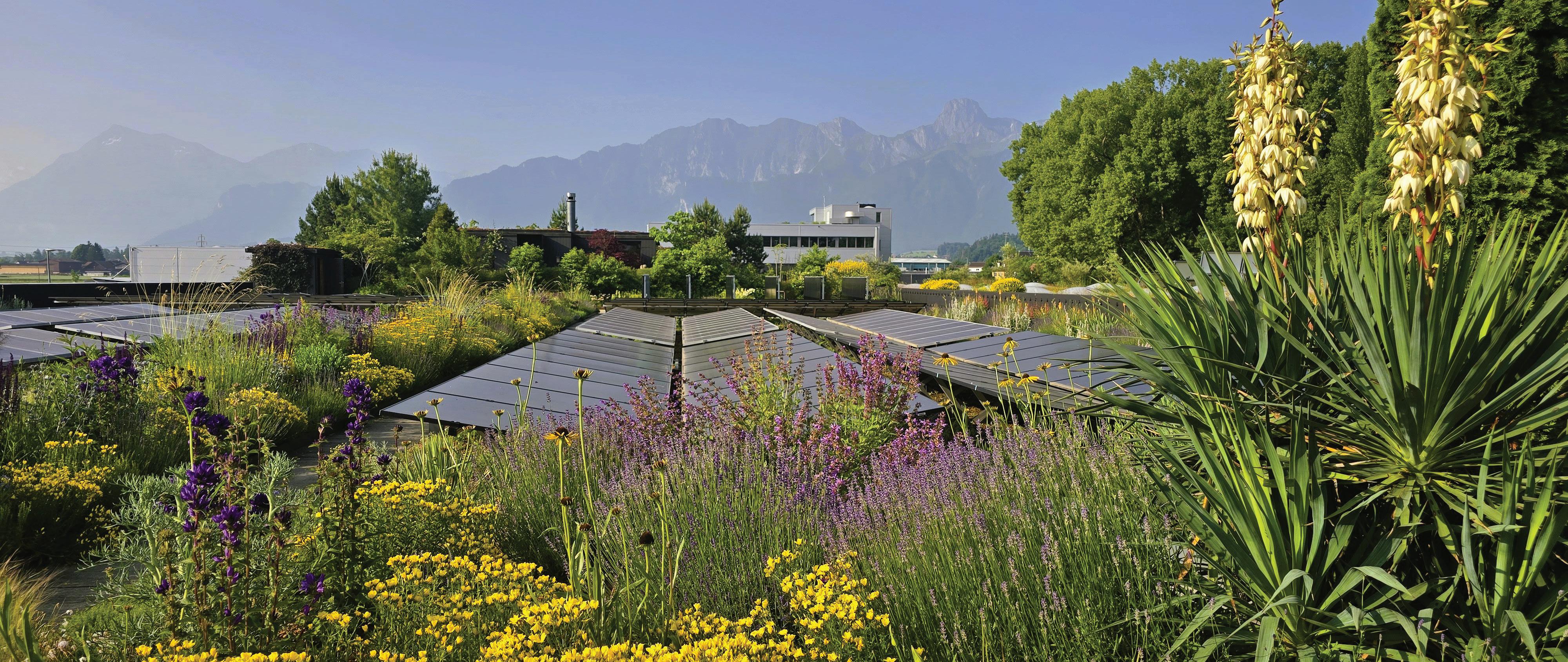 Bauteil, sondern eine zentrale Voraussetzung für die dauerhafte Funktion, Sicherheit und Wirtschaftlichkeit von Gründächern und Wasseranlagen. Themenweg erklärt, worum es geht Der Themenweg vermittelt zudem das Prinzip der «Schwammstadt». Begrünte Dächer speichern Regenwasser und geben es langsam wieder ab, was die Kanalisation entlastet und die Umgebung abkühlt. Studien belegen: Dachbegrünungen können die Temperatur in Städten um bis zu 2,8 Grad senken. Der Rundgang zeigt anschaulich, wie viel Wasser das Dach aufnehmen kann und wie sich die Vegetation bei Trockenheit und Regen verhält. Kombination Begrünung mit Photovoltaik Ein weiterer Schwerpunkt ist die Kombination von Begrünung und Photovoltaik. Contec zeigt diese Lösung unter dem Begriff «EnergieGrünDach». Zwischen den Pflanzenflächen stehen Solarmodule, die bewusst mindestens 30 Zentimeter über dem Substrat montiert wurden. So können Pflanzen nicht direkt an die Module wachsen und es entstehen vielfältige sonnige und schattige Mikrobereiche. Auf dem Themenweg lassen sich die von Contec entwickelten Photovoltaik-Unterkonstruktionssysteme «Contec.greenlight»