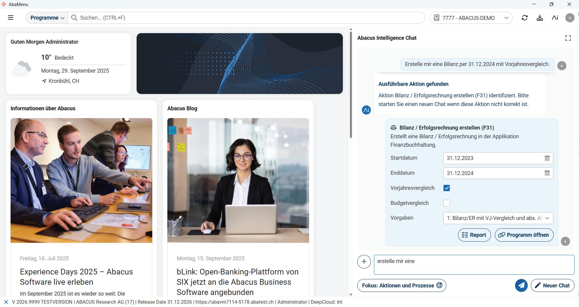 Als die Arbeitswelt vor einigen Jahren noch vom Megatrend Digitalisierung geprägt war, reagierte Abacus mit der Gründung der DeepCloud AG. Damit vollzog das Unternehmen den entscheidenden Schritt vom klassischen ERP hin zur digitalen Plattform: Daten, Prozesse und externe Systeme wurden vernetzt und die Basis für neue Geschäftsmodelle geschaffen. Heute geht das Unternehmen erneut einen Schritt weiter: Mit Abacus Intelligence beginnt das Zeitalter der künstlichen Intelligenz in der Business-Software. Eine neue Generation von Business-Software Die menschliche Sprache wird zum primären Mittel der Interaktion mit Software und Computern. Der Trend geht klar weg davon, dass Menschen lernen müssen, Software zu bedienen. Stattdessen wird Software so entwickelt, dass sie Menschen versteht – ihre Sprache, ihre Absichten und ihre Arbeitsweise. Mit Abacus Intelligence setzt Abacus diesen Wandel in die Praxis um: Über 2300 Programme und Applikationen, genutzt von mehr als 65 000 Unternehmen in allen Branchen, sprechen jetzt dieselbe Sprache – die der Anwenderinnen und Anwender. KI ist dabei nicht ein zusätzliches Feature, sondern das Fundament einer neuen Generation von Business-Software. Abacus Intelligence agiert wie eine digitale Assistenz, die Kontexte versteht, Workflows anstösst und auch komplexe Geschäftsprozesse automatisiert.