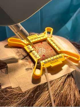 Theoretisch wäre das möglich. Wir setzen allerdings auf den hybriden Ansatz. Bei der Entnahme sind immer ein Arzt und ein technischer Mitarbeiter zugegen. Die chi rurgische Vorbereitung der Empfängerstelle übernimmt ein Arzt. Erst werden mit einem Skalpell Schlitze plat ziert, worin die Haarfollikel später implantiert werden. Dabei wird der Anatomie und dem Haardesign Rech nung getragen, damit ein natürliches Ergebnis mit maxi maler optischer Haardichte erzielt wird. Für die Schlitze benutzen wir Saphire, da sie extrem scharf, minimal invasiv und präzise sind. Daraus resultieren weniger Schwellungen, Blutungen und Wundheilungsstörun gen. Dieser Workflow ist optimal. Die Maschine über nimmt die ermüdenden Aufgaben, während der Mensch immer noch für die intellektuelle Leistung zuständig ist.