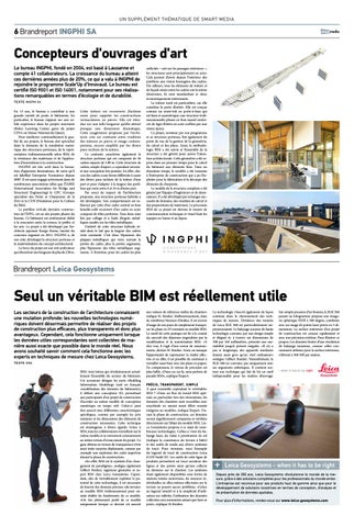 Seul un véritable BIM est réellement utile Les secteurs de la construction de l’architecture connaissent une mutation profonde: les nouvelles technologies numériques doivent désormais permettre de réaliser des projets de construction plus efficaces, plus transparents et donc plus avantageux. Cependant, cela fonctionne uniquement lorsque les données utiles correspondantes sont collectées de manière aussi exacte que possible dans le monde réel. Nous avons souhaité savoir comment cela fonctionne avec les experts en techniques de mesure chez Leica Geosystems. TEXTE SMA
