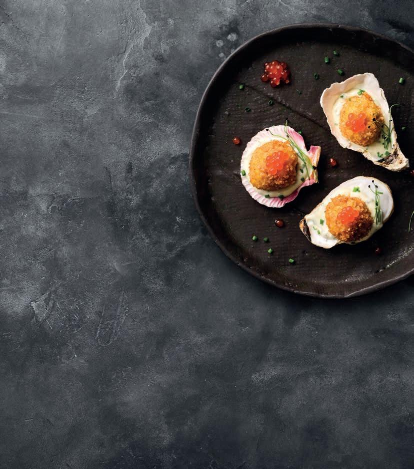 Hrustljave morske kroglice s kaviarjem in drobnjakovo majonezo