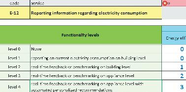 The SRI is an index, expressed as a percentage 0..100%, of the building’s intelligence assessment based on the level of implementation of a series of services (SRS, Smart Readiness Services): it determines a 0-100% weight on the impact criteria that ultimately determine the value of the final indicator. It is a matrix of indices which, correlated with appropriate weights, arrive at a single index (see next image). (FIGURA 4) One of the most important innovations of the SRI is the factor n. 6: “information to the occupier”. Let’s take an example, let’s consider the function or SRS E-12: “information on electricity consumption.” As can be seen from the figure below, the maximum score on the “information to occupants” criterion is obtained at level 4. Level 4 of this function requires the automation system to advise users (automated personalised recommendations) on how to act in an energetically virtuous manner both for the building itself and for the appliances (appliance level). (FIGURA 5)