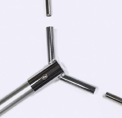 La structure est composée de tubes en fibre de carbone et d’angles en PVC qui s’assemblent facilement les uns dans les autres.
