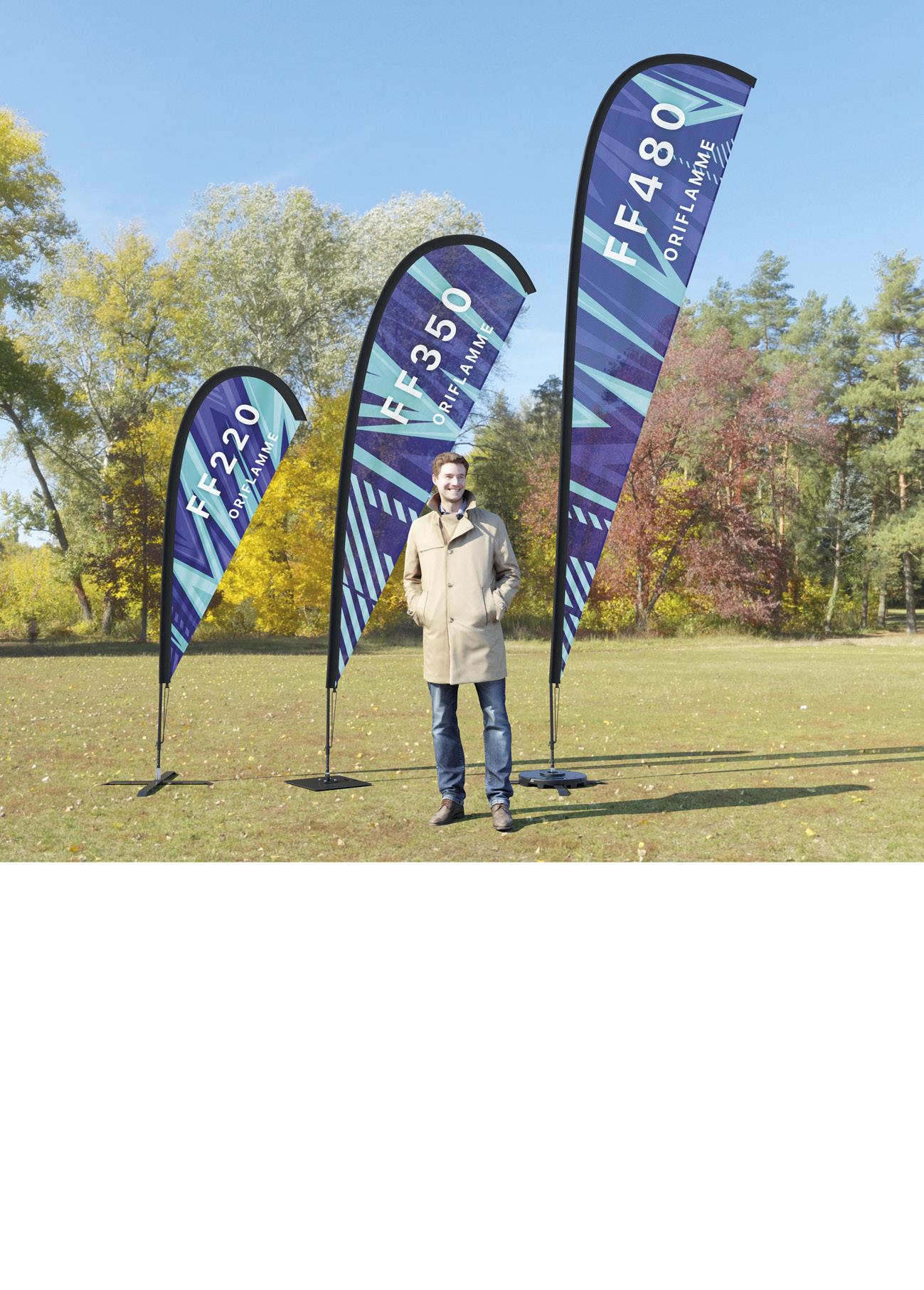 Drapeau de sol haricot recto-verso à mémoire de forme. Très utilisée dans le milieu du golf, cette barrière se déploie en 2 secondes comme une tente grâce à sa structure métallique à mémoire de forme. L'impression est réalisée des 2 côtés sur une matière opaque pour bien lire les 2 côtés. Possibilité de faire 2 visuels différents d'un côté et de l'autre. Structure conditionnée dans un sac de transport. Facile à transporter et à déplier et replier. Sardines fournies pour fixation au sol. Utilisation extérieure conseillée. Structure disponible sur stock dans notre entrepôt parisien, impression réalisée après validation de la commande