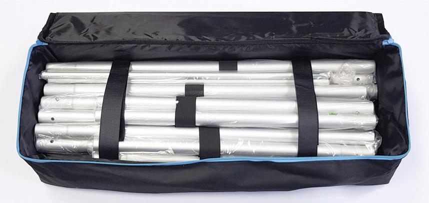 Sac de transport en polyester 300 D avec compartiments de rangement pour la structure et la toile.