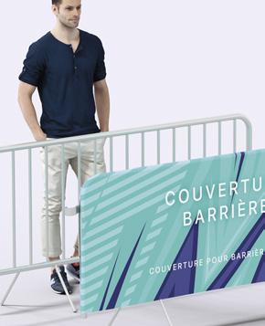 Contrairement à l’AEROPATH (p.44), cette barrière peut être exposée en extérieur. L’impression est réalisée en sublimation numérique haute définition, en recto transparent ou recto/verso.