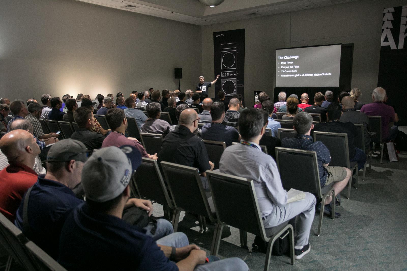 Manufacturer Product Training (MPT) programs delivered hands-on experiences from leading brands like Control4, Crestron, Lutron, and Sonance, while the Smart Stage hosted live panels on topics such as AI in AV, interoperability challenges, sustainability,