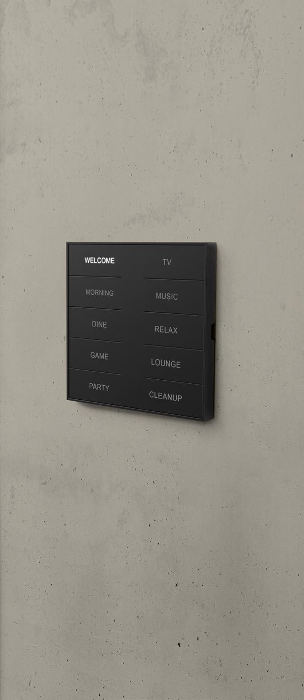The LS TOUCH is permanently connected to a frame of the JUNG LS 990 or LS ZERO switch ranges and is available in various materials and colours. The unique real-me-tall variants of the ranges ideally match the design of LS TOUCH. LS ZERO enables flush installation. Both ranges are available in 63 Les Couleurs® Le Corbusier colours. The matching background colour is stored in the user interface for each frame colour.