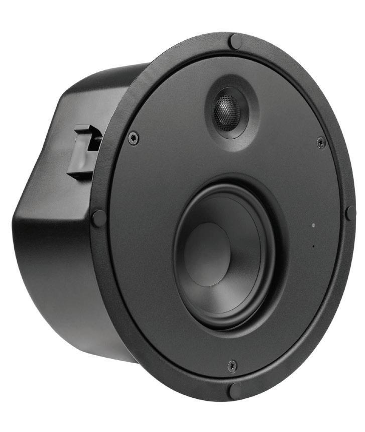 Available in black and white, the speaker features an optical input and two Ethernet ports — one for a hardwired network connection, and one for daisy chaining another speaker. The iO1 can be powered by a standard electrical outlet or existing lighting circuit; is available with drivers for Control4, Elan, KNX, and Loxone control systems; and provides support for Alexa and OK Google for convenient voice control.