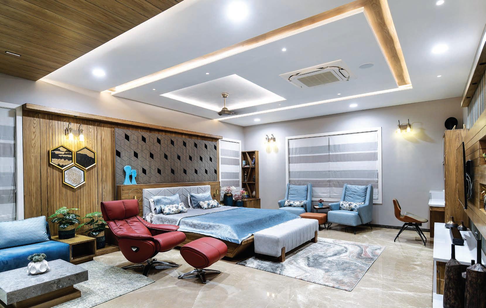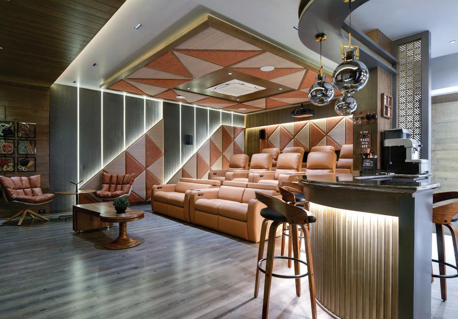 Experts from building design, lighting, landscaping, audio-video integration, automation, and interior decoration (including local artisans) were handpicked to rise to the challenge of customizing a never before seen living experience. MACBEE (India) was brought on board to customize and integrate numerous aspects of the entire blueprint, including cinema design, audio-video distribution, integration control, intercommunication systems, lighting ambiance, and networking solutions across the site. “In short, the team was tasked to proficiently design a single,easyto-use, command point to declutter all the technology, activities, and macros happening behind the scenes.” Informs Sawan Nichani.
