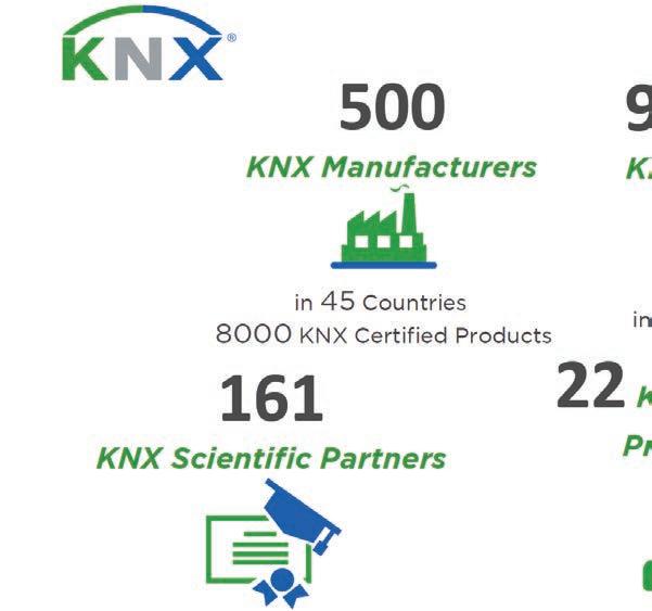 Light + Building with the KNX exhibition stand in hall 12.0 and in hall 11.1 offers the ideal platform for KNX professionals from all over the world to network with each other, but also to receive further training. In addition to presentations on the latest KNX developments in the areas of IoT, energy management and KNX Secure, numerous fascinating conference sessions and discussions with top KNX experts will open the door to a deeper dive into the world of KNX and the acquisition of specialised know-how. And for those for whom KNX is still new, the “Start@ KNX” area is a good starting point: KNX beginners can look forward to comprehensive and easy-tounderstand introductions to home and building automation with KNX, as well as plenty of information about training offers. A special area for developers provides an overview of the development programme that the KNX Association has set up for innovative companies: The new KNX startup incubator programme provides resources and visibility to startup companies committed to developing KNX IoT-based solutions.