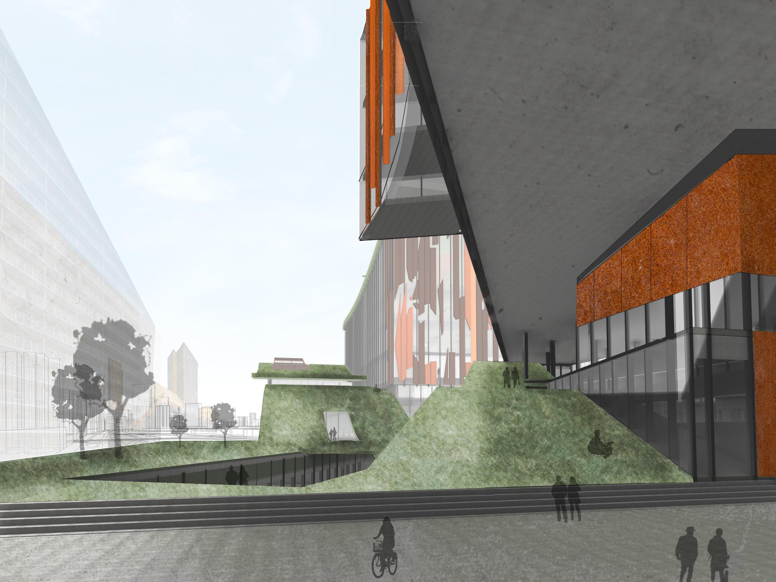 Boundaries are blurred between what feels separate. Student and resident, public and private, earth and city while giving each freedom of movement to be itself or to discover and become something new.