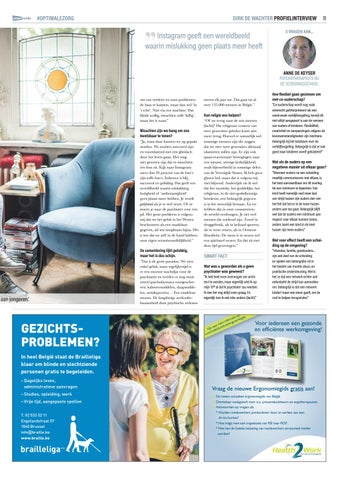 In heel België staat de Brailleliga klaar om blinde en slechtziende personen gratis te begeleiden. – Dagelijks leven, administratieve aanvragen – Studies, opleiding, werk – Vrije tijd, aangepaste spellen T. 02 533 32 11 Engelandstraat 57 1060 Brussel info@braille.be www.braille.be