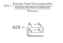 El EER correspondiente a la eficacia energética frigorífica, indica esa misma relación pero con el frio producido en el evaporador.