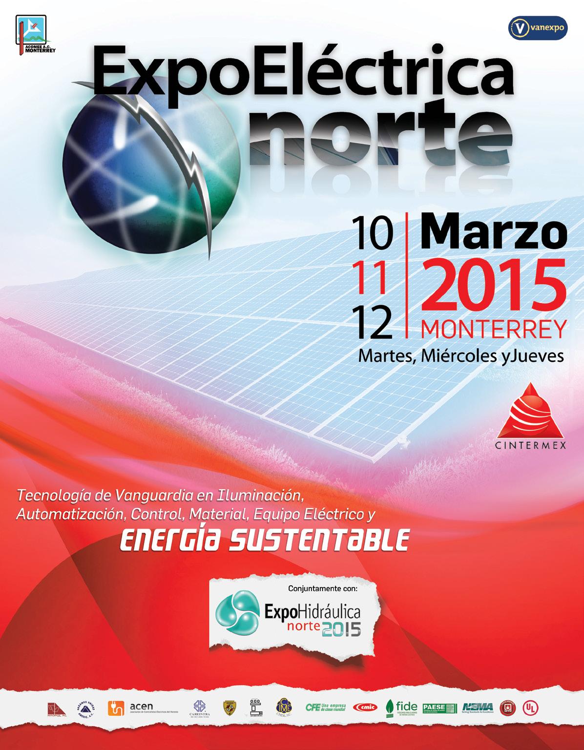 EXPO ELÉCTRICA NORTE 2015 CINTERMEX. MONTERREY, NUEVO LEÓN. DEL 11 AL 13 DE MARZO. www.expoelectrica.com.mx