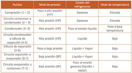 Descripción del ciclo frigorífico compresión: