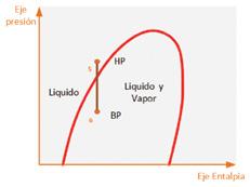 En el caso que el intercambio de energía en el evaporador disminuya, la diferencia de presión entre HP y BP se reduce, provocando un menor consumo eléctrico y restituyendo más energía frigorífica, lo que aumenta evidentemente la eficacia del equipo.