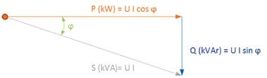 El factor de potencia de la instalación, que se calcula según la siguiente fórmula, resulta del cálculo trigonométrico del ángulo: