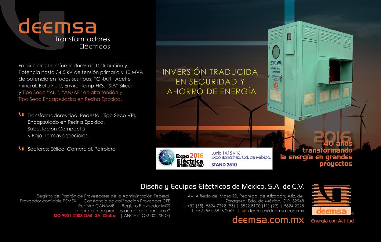 Energía Hoy es una publicación mensual de Editorial Engrane SA de CV. Editor responsable: Rita del Pilar Varela Mayorga. Número del Certificado de Reserva otorgado por el Instituto Nacional de Derechos de Autor: 04-2015121714334800-102. Número de Certificado de Licitud de Título: 16135. Número de Certificado de Licitud de Contenido: 16135. Oficinas: Uxmal 221, Col. Narvarte, Distrito Federal, C.P. 03020, Teléfono (55) 6259 4607.