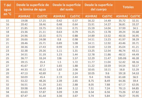 Existen normas de referencia que recomiendan temperaturas de diseño de piscinas según el uso de las mismas, en donde la