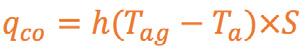 COPISS = Calor sensible por convección sobre la superficie de la piscina (W). COPISS = 0 si la temperatura de la piscina es inferior o igual a la temperatura del ambiente del recinto.