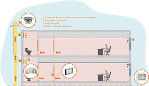 –Los locales húmedos deben encontrarse en depresión por lo que se debe equipar esas estancias de ventiladores o rejillas conectadas a un sistema de extracción mecánica.