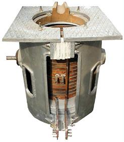 En esta categoría de hornos se pueden distinguir dos tipologías que son: • Hornos de crisol cuyo funcionamiento se basa en hacer circular una corriente alterna a una frecuencia definida en una bobina que rodea un refractario usualmente cilíndrica, donde se encuentra el metal a fundir.