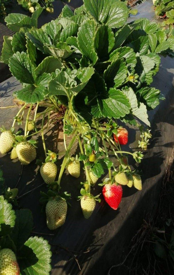 mentó un mayor amarre de flor y número de bellotas, incrementando así el rendimiento por hectárea a un 12 por ciento. Y por último, se encuentran los cultivos de fresa en San Quintín, en el mismo estado, donde se vio un mejor amarre de la flor y llenado de la fruta.