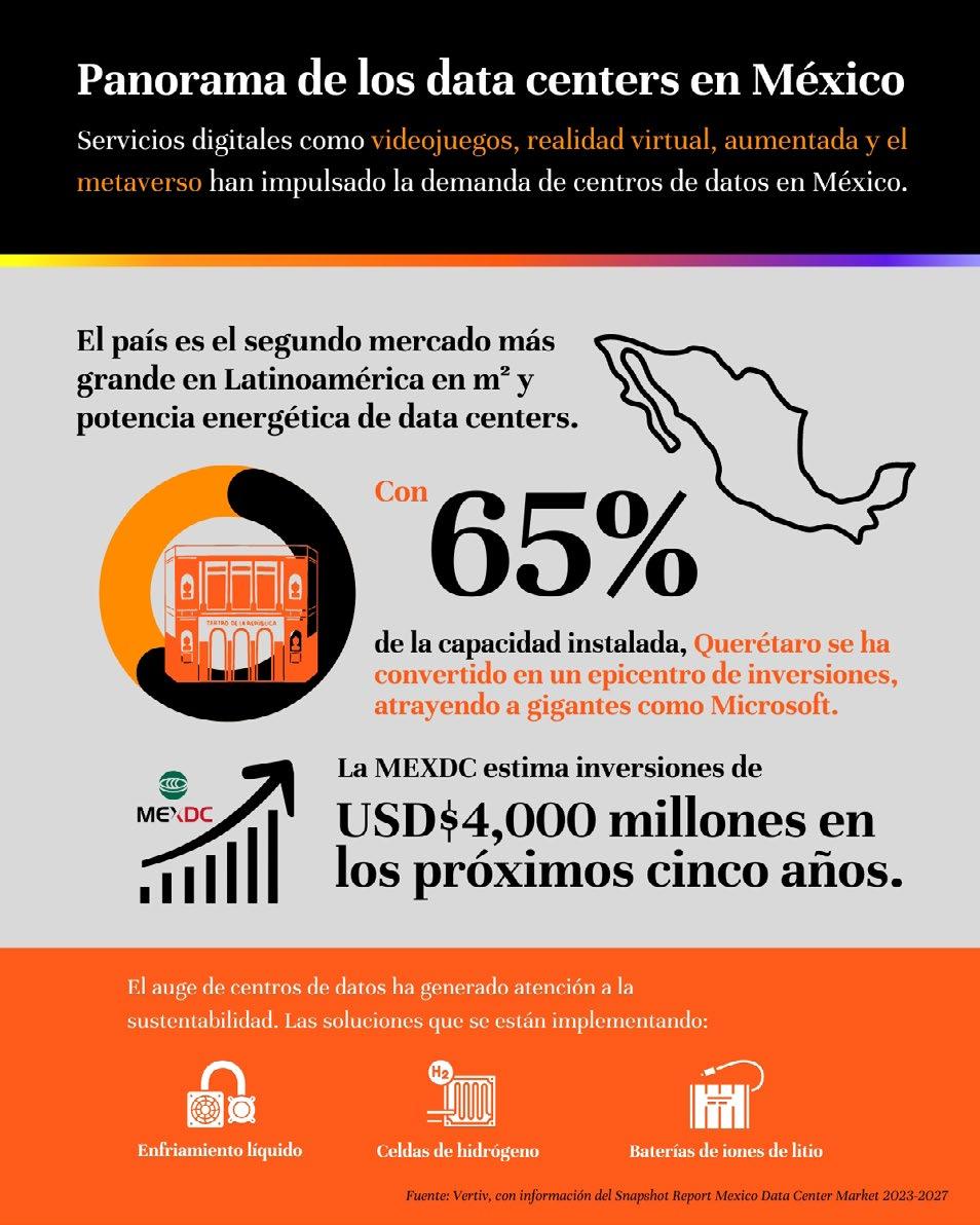 El estado de Querétaro se ha convertido en un epicentro de las inversiones en centros de datos, debido a su posicionamiento geográfico, amplia conectividad a Internet, y energía eléctrica e infraestructura. Según el informe del DCD, previamente mencionado, Querétaro representa el 65 por ciento de la capacidad instalada en el mercado. Muestra de ello es que, a comienzos de 2022, Microsoft anunció que tenía planeado construir un nuevo centro de datos en esa localidad.