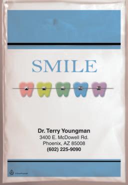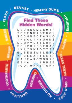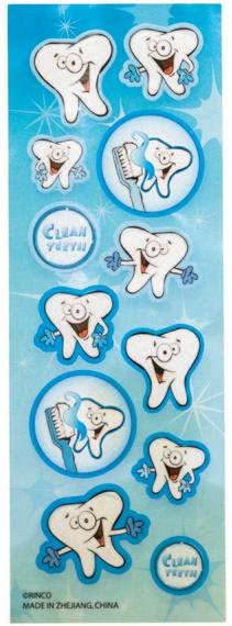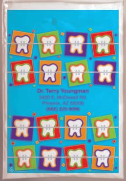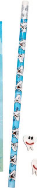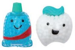 Fun tooth-shaped hot/cold packs help soothe discomfort following treatment. Instructions for use are printed on the back of each item.