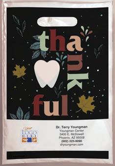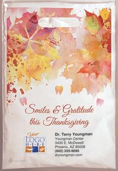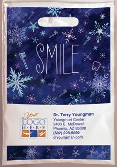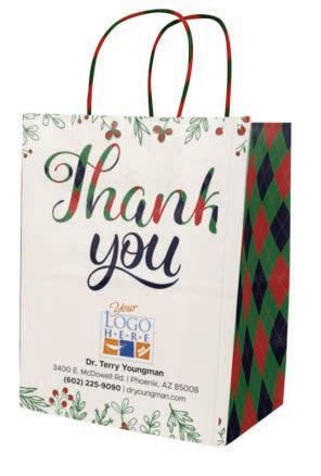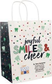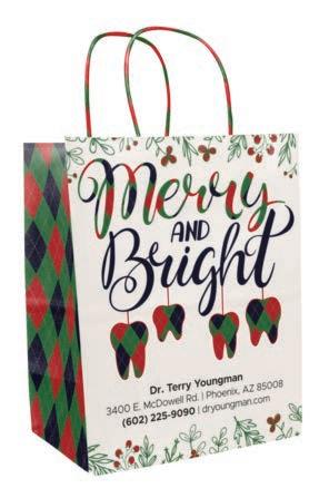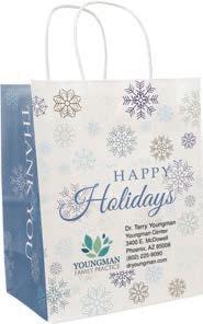 Cheerful, seasonal designs on Full-coverage Handled Paper Bags call extra attention to your practice logo and information, making these the ideal bags for holiday events and giveaways. Tuck purchases, prizes, samples, and more inside bags that get noticed from every angle. Measures 8½" x 10¼" x 5". Ships within 5-7 days.